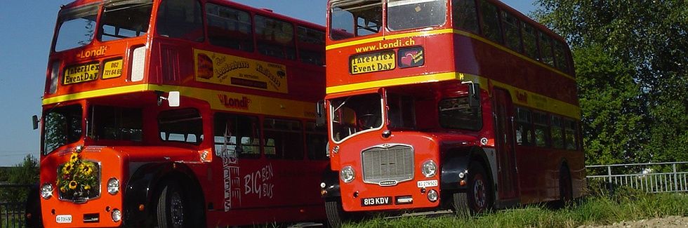 Suchen Sie das Aussergewöhnliche, Extravagante? Dann sind Sie hier genau richtig. Mit unseren Londonbussen / Doppeldeckerbussen sorgen Sie für Aufsehen und sie bescheren Ihnen einen unvergesslichen Tag.